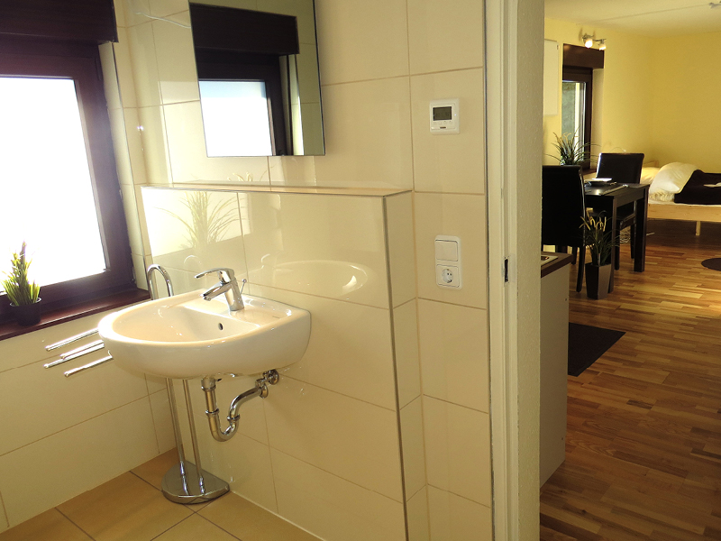 • 1 Zimmer mit Badezimmer, Dusche, WC und Küche